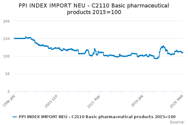 Download this time seriesPPI INDEX IMPORT NEU - C2110 Basic pharmaceutical products 2015=100