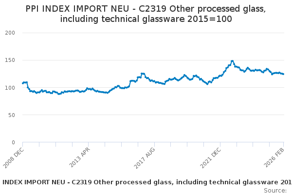 Download this time seriesPPI INDEX IMPORT NEU - C2319 Other processed glass, including technical glassware 2015=100