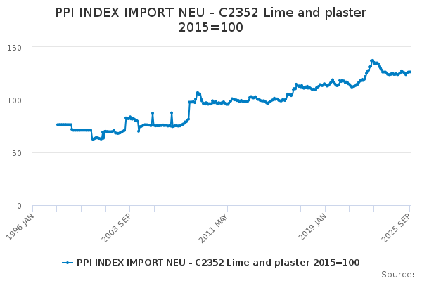 Download this time seriesPPI INDEX IMPORT NEU - C2352 Lime and plaster 2015=100
