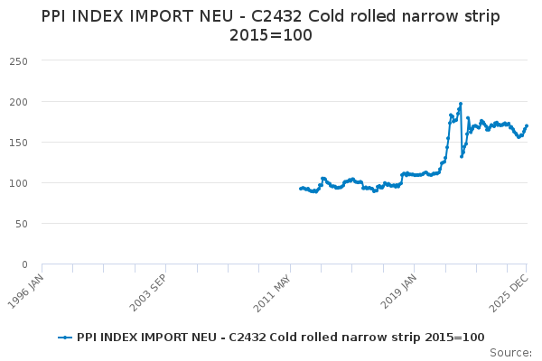 Download this time seriesPPI INDEX IMPORT NEU - C2432 Cold rolled narrow strip 2015=100