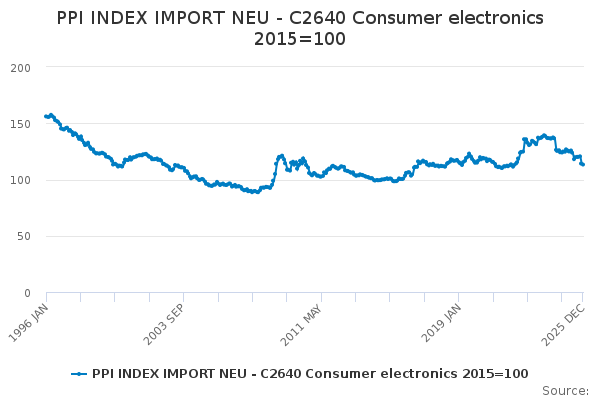 Download this time seriesPPI INDEX IMPORT NEU - C2640 Consumer electronics 2015=100