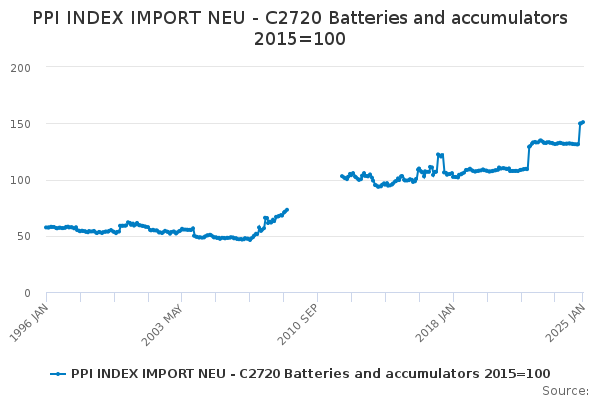 Download this time seriesPPI INDEX IMPORT NEU - C2720 Batteries and accumulators 2015=100