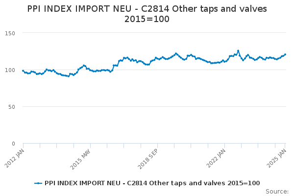 Download this time seriesPPI INDEX IMPORT NEU - C2814 Other taps and valves 2015=100