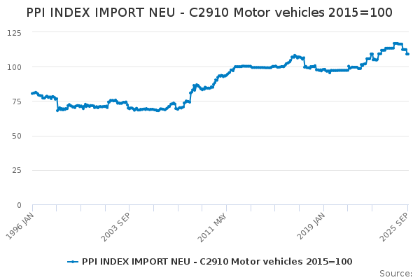 Download this time seriesPPI INDEX IMPORT NEU - C2910 Motor vehicles 2015=100