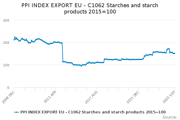 Download this time seriesPPI INDEX EXPORT EU - C1062 Starches and starch products 2015=100