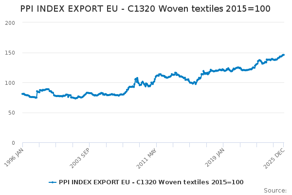 Download this time seriesPPI INDEX EXPORT EU - C1320 Woven textiles 2015=100