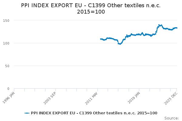 Download this time seriesPPI INDEX EXPORT EU - C1399 Other textiles n.e.c. 2015=100