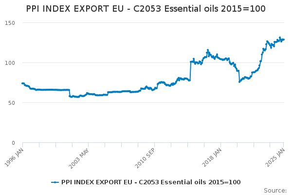 Download this time seriesPPI INDEX EXPORT EU - C2053 Essential oils 2015=100