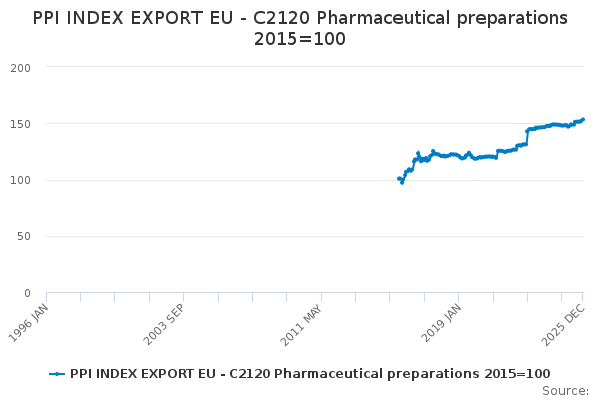 Download this time seriesPPI INDEX EXPORT EU - C2120 Pharmaceutical preparations 2015=100