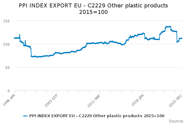 Download this time seriesPPI INDEX EXPORT EU - C2229 Other plastic products 2015=100