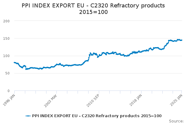 Download this time seriesPPI INDEX EXPORT EU - C2320 Refractory products 2015=100