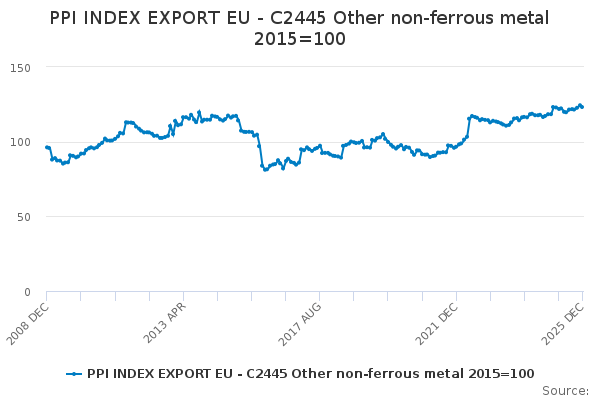Download this time seriesPPI INDEX EXPORT EU - C2445 Other non-ferrous metal 2015=100