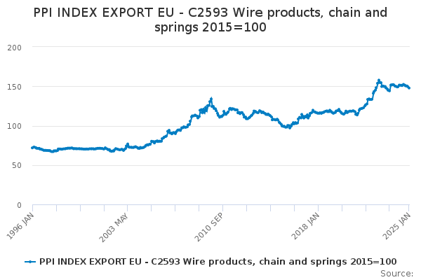 Download this time seriesPPI INDEX EXPORT EU - C2593 Wire products, chain and springs 2015=100