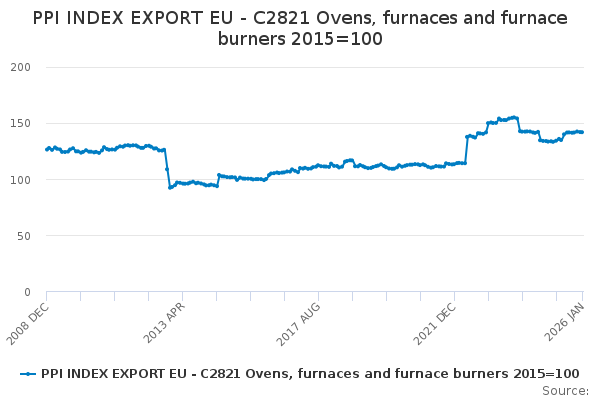 Download this time seriesPPI INDEX EXPORT EU - C2821 Ovens, furnaces and furnace burners 2015=100