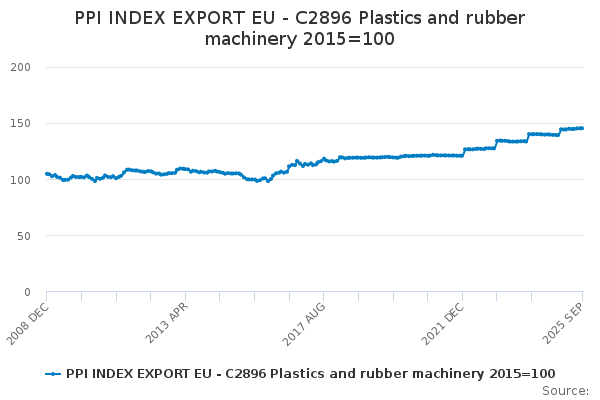 Download this time seriesPPI INDEX EXPORT EU - C2896 Plastics and rubber machinery 2015=100