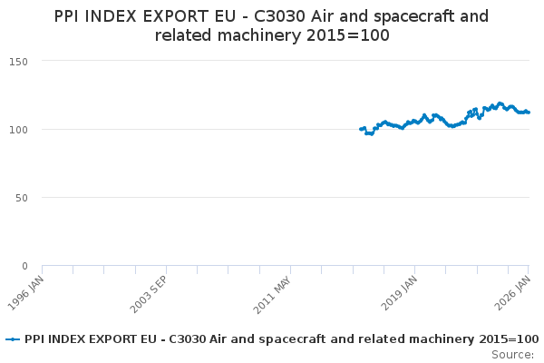 Download this time seriesPPI INDEX EXPORT EU - C3030 Air and spacecraft and related machinery 2015=100