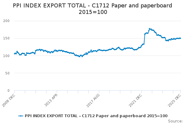 Download this time seriesPPI INDEX EXPORT TOTAL - C1712 Paper and paperboard 2015=100