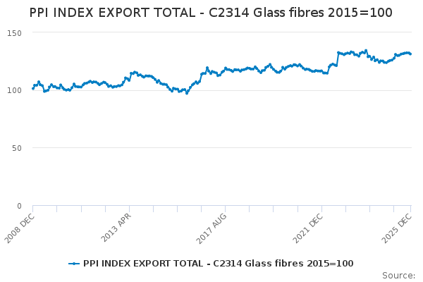 Download this time seriesPPI INDEX EXPORT TOTAL - C2314 Glass fibres 2015=100
