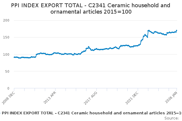 Download this time seriesPPI INDEX EXPORT TOTAL - C2341 Ceramic household and ornamental articles 2015=100
