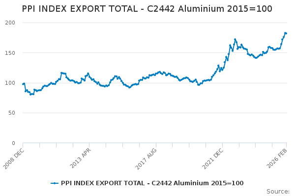 Download this time seriesPPI INDEX EXPORT TOTAL - C2442 Aluminium 2015=100