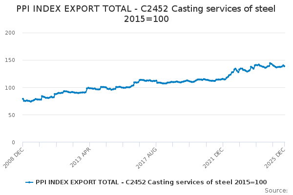 Download this time seriesPPI INDEX EXPORT TOTAL - C2452 Casting services of steel 2015=100