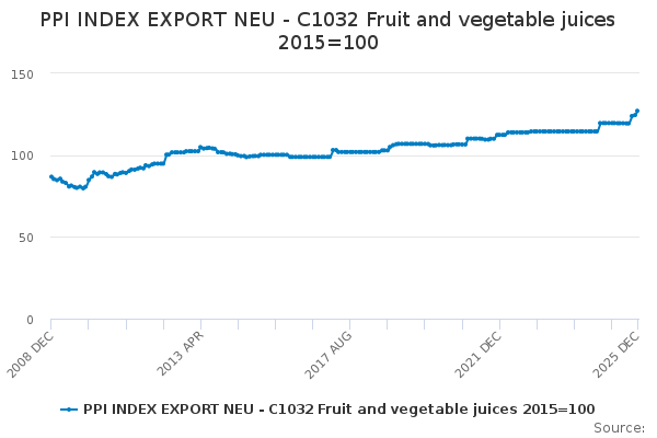 Download this time seriesPPI INDEX EXPORT NEU - C1032 Fruit and vegetable juices 2015=100