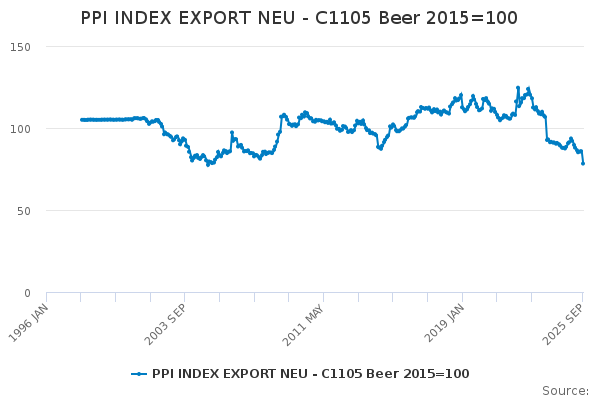 Download this time seriesPPI INDEX EXPORT NEU - C1105 Beer 2015=100