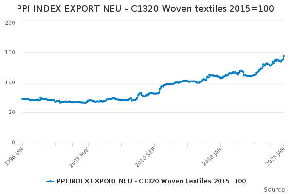 Download this time seriesPPI INDEX EXPORT NEU - C1320 Woven textiles 2015=100