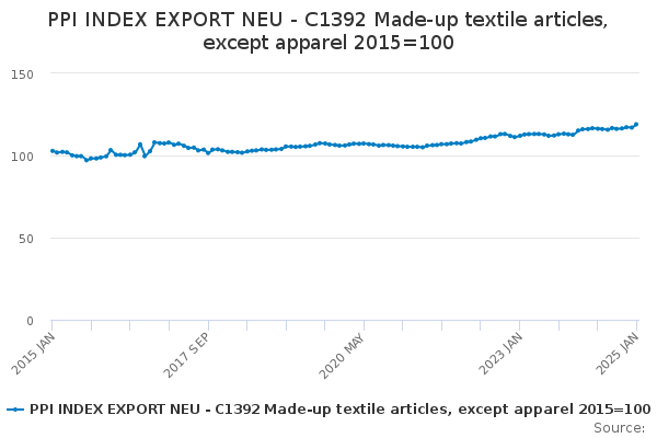 Download this time seriesPPI INDEX EXPORT NEU - C1392 Made-up textile articles, except apparel 2015=100