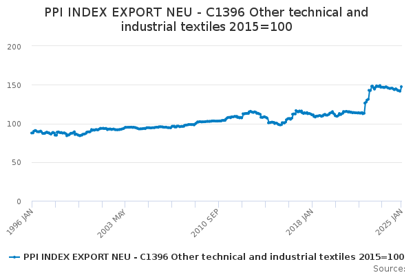 Download this time seriesPPI INDEX EXPORT NEU - C1396 Other technical and industrial textiles 2015=100