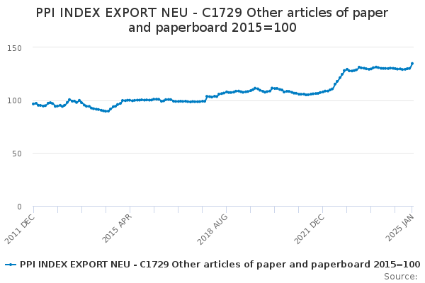 Download this time seriesPPI INDEX EXPORT NEU - C1729 Other articles of paper and paperboard 2015=100