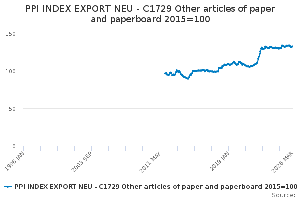Download this time seriesPPI INDEX EXPORT NEU - C1729 Other articles of paper and paperboard 2015=100