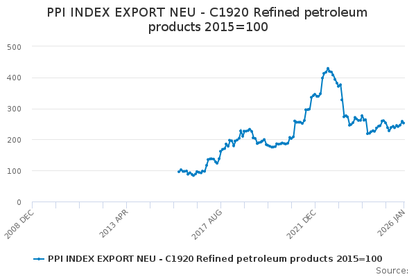 Download this time seriesPPI INDEX EXPORT NEU - C1920 Refined petroleum products 2015=100