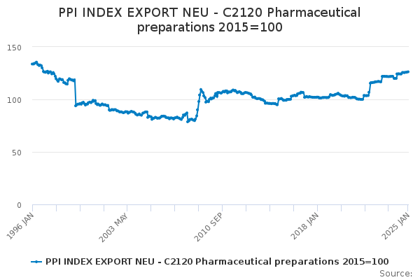 Download this time seriesPPI INDEX EXPORT NEU - C2120 Pharmaceutical preparations 2015=100