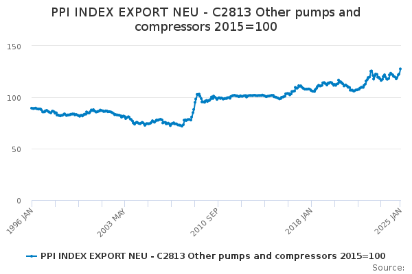 Download this time seriesPPI INDEX EXPORT NEU - C2813 Other pumps and compressors 2015=100