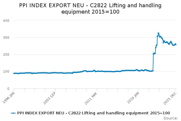 Download this time seriesPPI INDEX EXPORT NEU - C2822 Lifting and handling equipment 2015=100