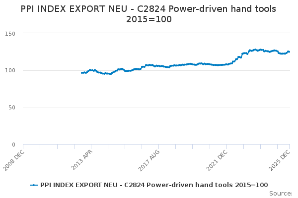 Download this time seriesPPI INDEX EXPORT NEU - C2824 Power-driven hand tools 2015=100
