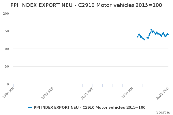 Download this time seriesPPI INDEX EXPORT NEU - C2910 Motor vehicles 2015=100