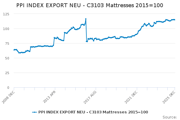 Download this time seriesPPI INDEX EXPORT NEU - C3103 Mattresses 2015=100