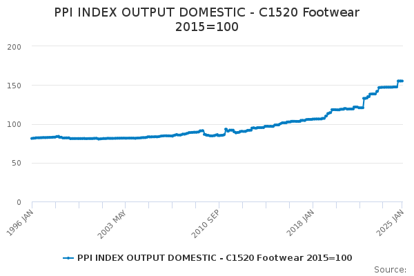 Download this time seriesPPI INDEX OUTPUT DOMESTIC - C1520 Footwear 2015=100