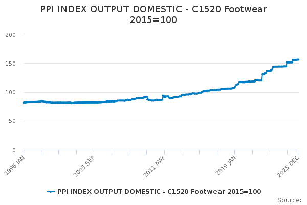 Download this time seriesPPI INDEX OUTPUT DOMESTIC - C1520 Footwear 2015=100