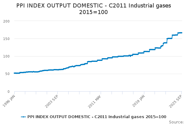 Download this time seriesPPI INDEX OUTPUT DOMESTIC - C2011 Industrial gases 2015=100