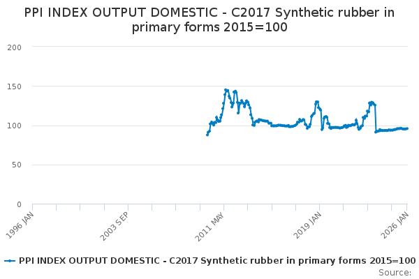 Download this time seriesPPI INDEX OUTPUT DOMESTIC - C2017 Synthetic rubber in primary forms 2015=100