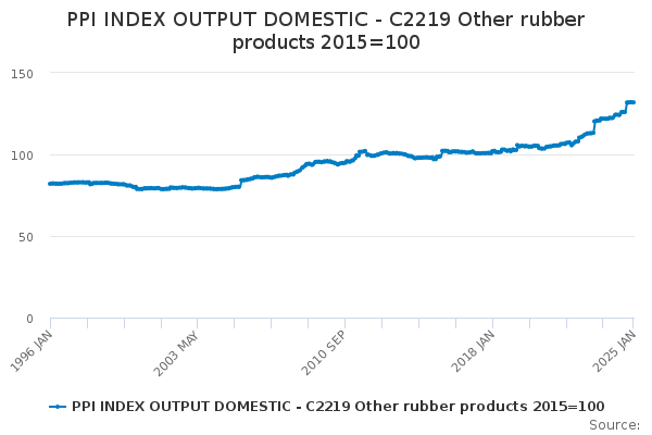 Download this time seriesPPI INDEX OUTPUT DOMESTIC - C2219 Other rubber products 2015=100
