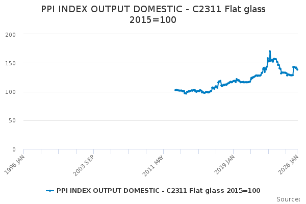Download this time seriesPPI INDEX OUTPUT DOMESTIC - C2311 Flat glass 2015=100