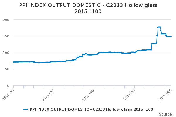Download this time seriesPPI INDEX OUTPUT DOMESTIC - C2313 Hollow glass 2015=100