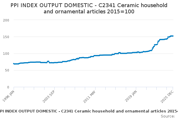 Download this time seriesPPI INDEX OUTPUT DOMESTIC - C2341 Ceramic household and ornamental articles 2015=100