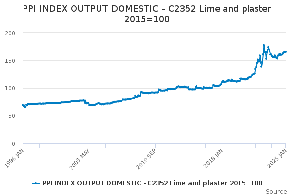 Download this time seriesPPI INDEX OUTPUT DOMESTIC - C2352 Lime and plaster 2015=100