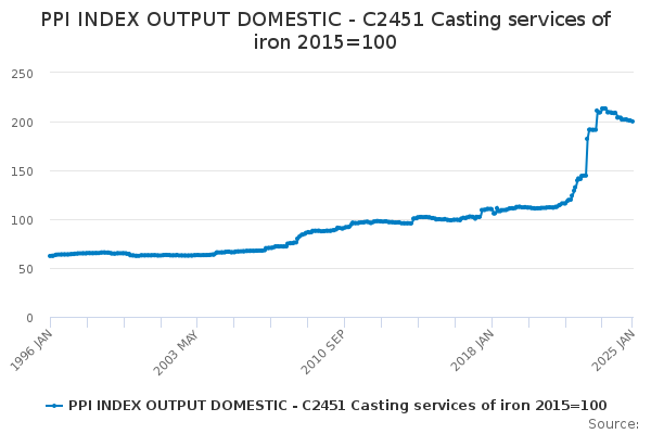 Download this time seriesPPI INDEX OUTPUT DOMESTIC - C2451 Casting services of iron 2015=100