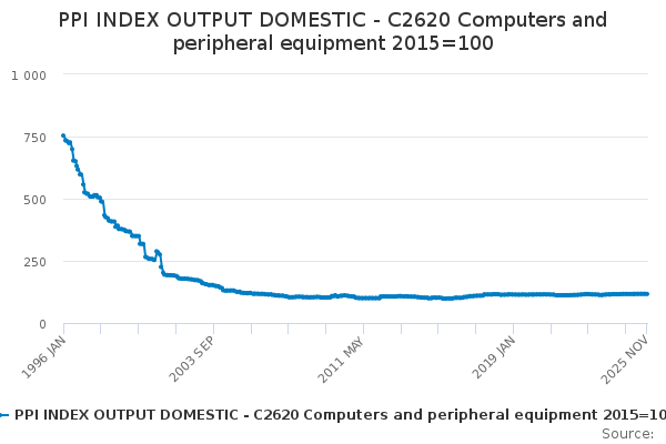 Download this time seriesPPI INDEX OUTPUT DOMESTIC - C2620 Computers and peripheral equipment 2015=100